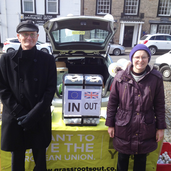 Our day on Barnard Castle Market Place was an outstanding success for a change and we were able to hand out more than 300 Grassroots Out and EU Myths leaflets to people who were keen to study the issues in preparation for the big day on June 23rd.